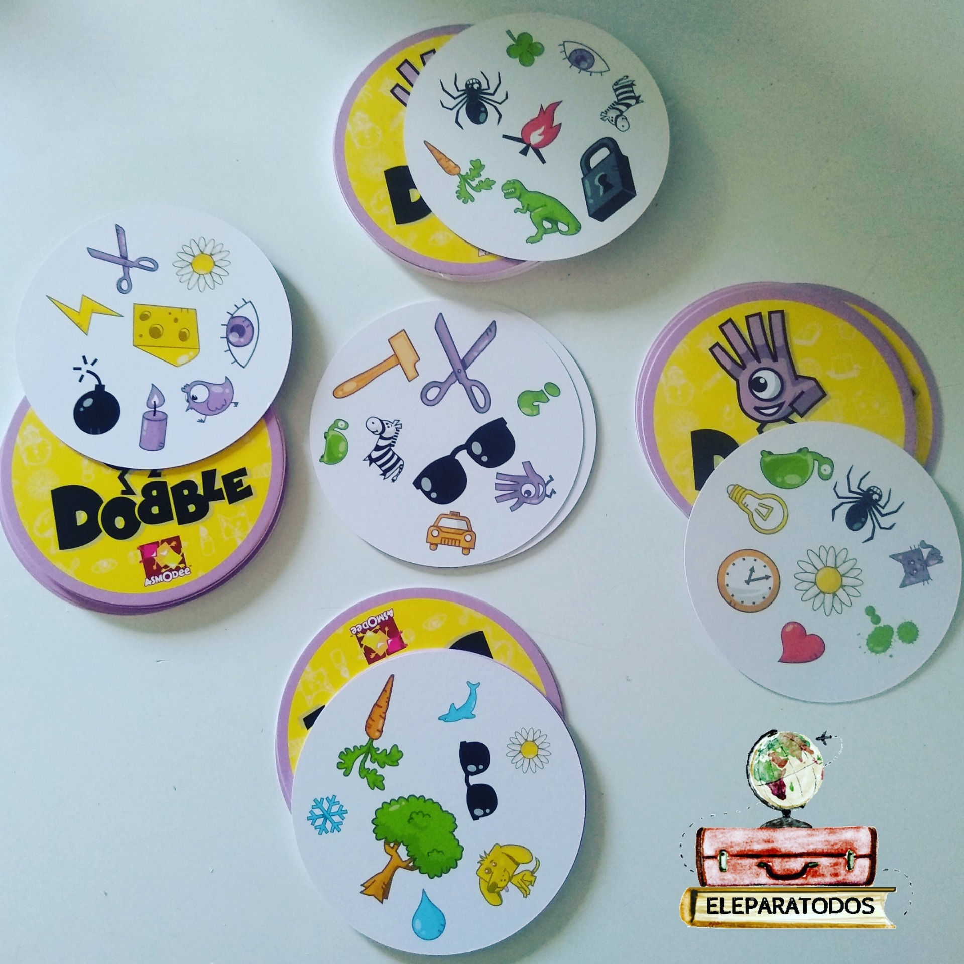 Dobble es un increíble juego de mesa de rapidez mental y visual que nos sirve para reforzar el vocabulario. El concepto es simple: cada una de las 55 cartas del mazo tiene ocho símbolos, y siempre hay exactamente un símbolo coincidente entre dos cartas cualquiera en el mazo. Tu objetivo es ser el más rápido en encontrar la coincidencia entre dos cartas